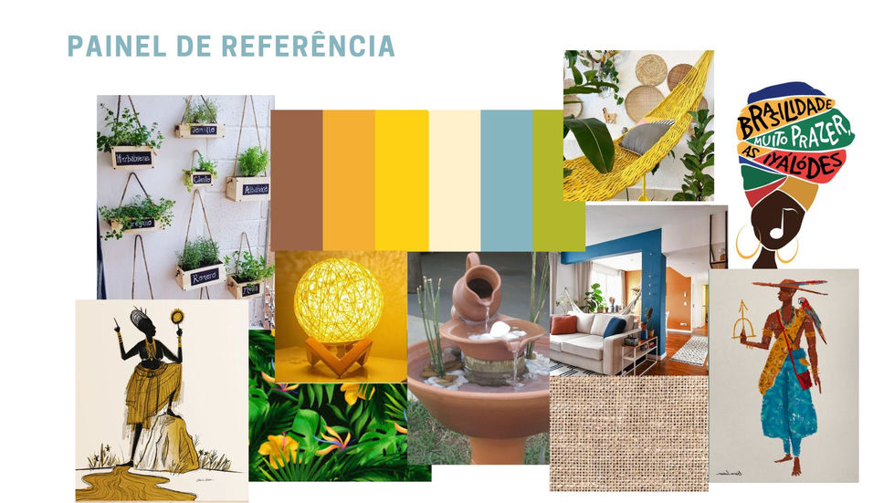 Nessa consultoria tivemos o desafio de agregar cores fortes e diferentes para compor um ambiente alegre, aconchegante e divertido para sala de estar e jantar da família. Optamos por agregar os elementos dos Orixás Oxum e Logun Edé, escolhidos pelo casal, para ornar as cores e a aplicação de diferentes materialidades na composição.